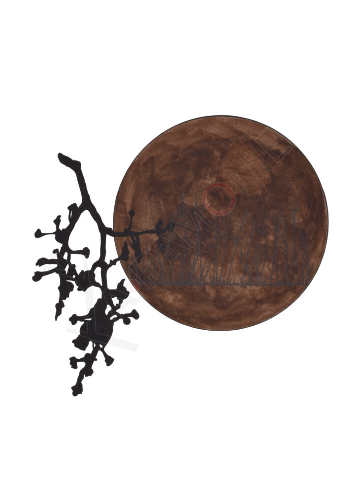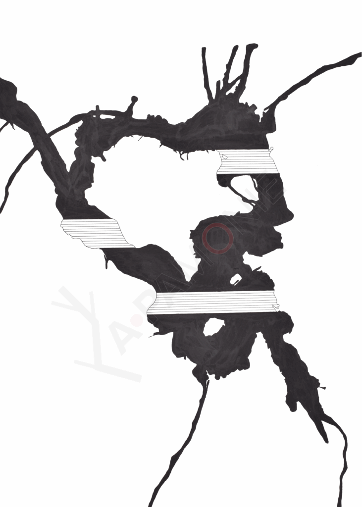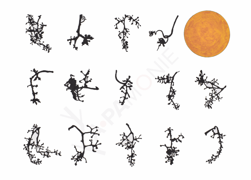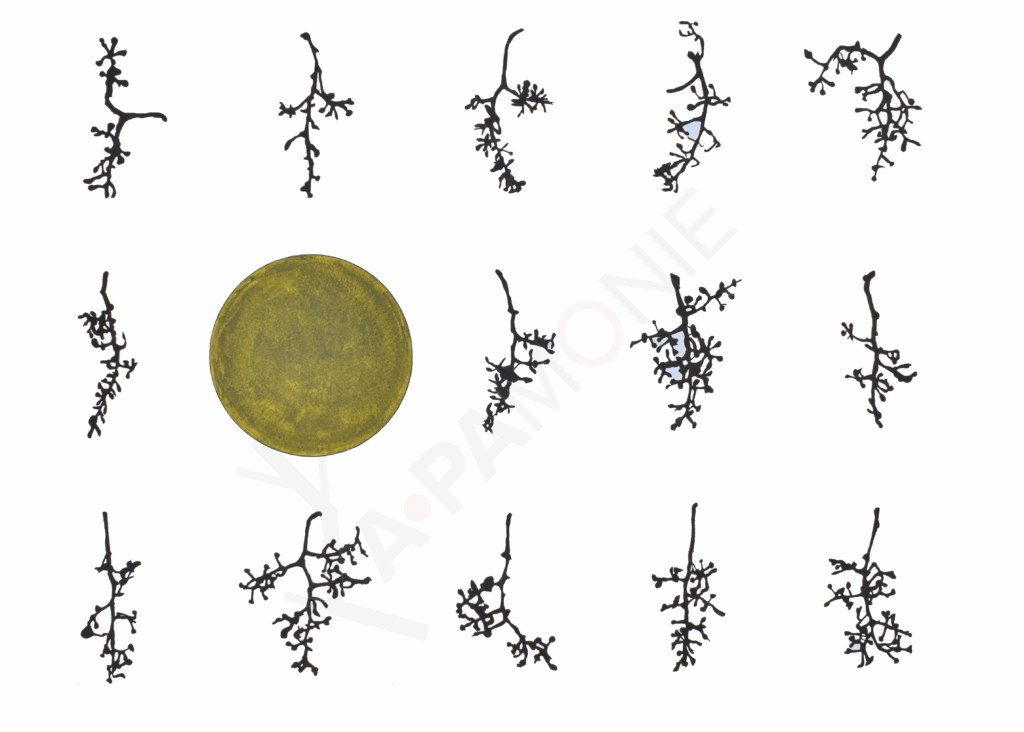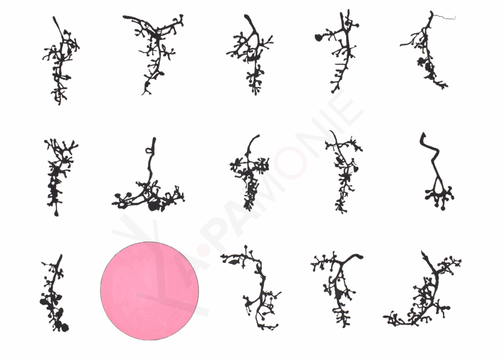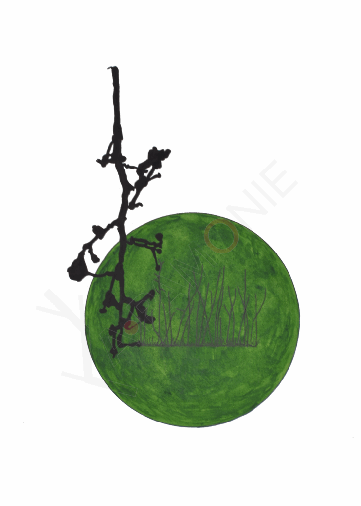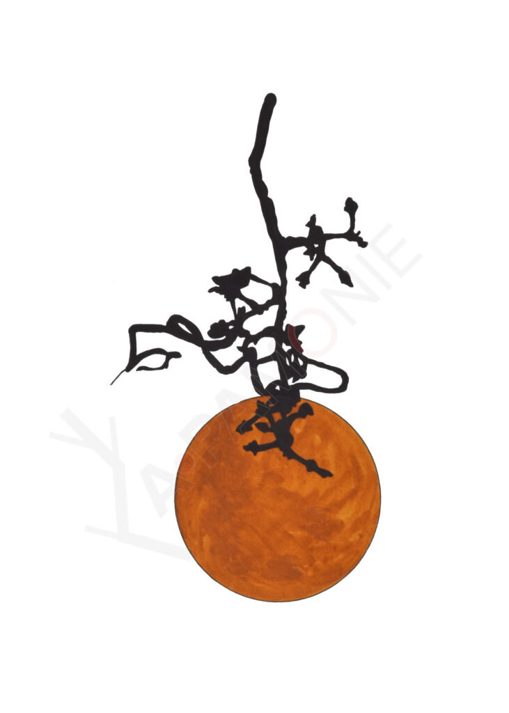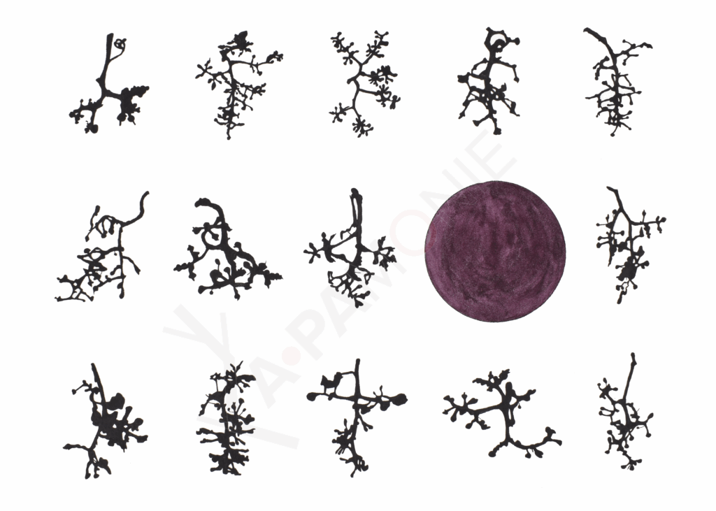Cette sculpture a été créée à partir d’un cep issu des vignobles du domaine Mérieau. Il s’agit d’un prolongement en trois dimensions de la série des réseaux. L’aquarelle qui en constitue le fond transpose la silhouette du cep. Toutefois, l’ombre du plant arraché vient compléter celle théorique placée sur la feuille de papier, ceci de manière variable en fonction de l’éclairage ambiant.